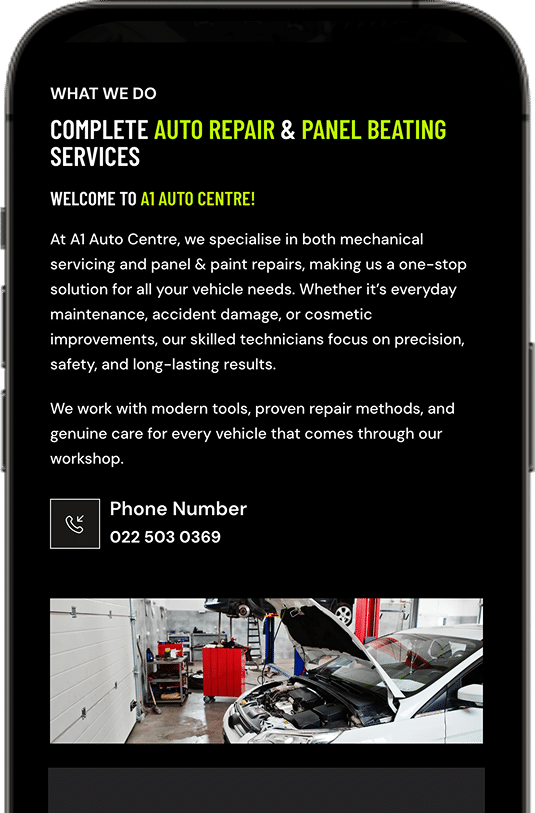 A clear, trust-driven introduction to the workshop, highlighting expertise, values, and the story behind A1 Auto Centre.