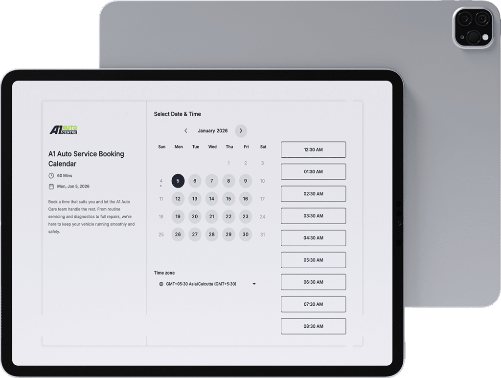 A streamlined, automated booking experience that lets customers select services, choose a time, and confirm appointments in minutes.