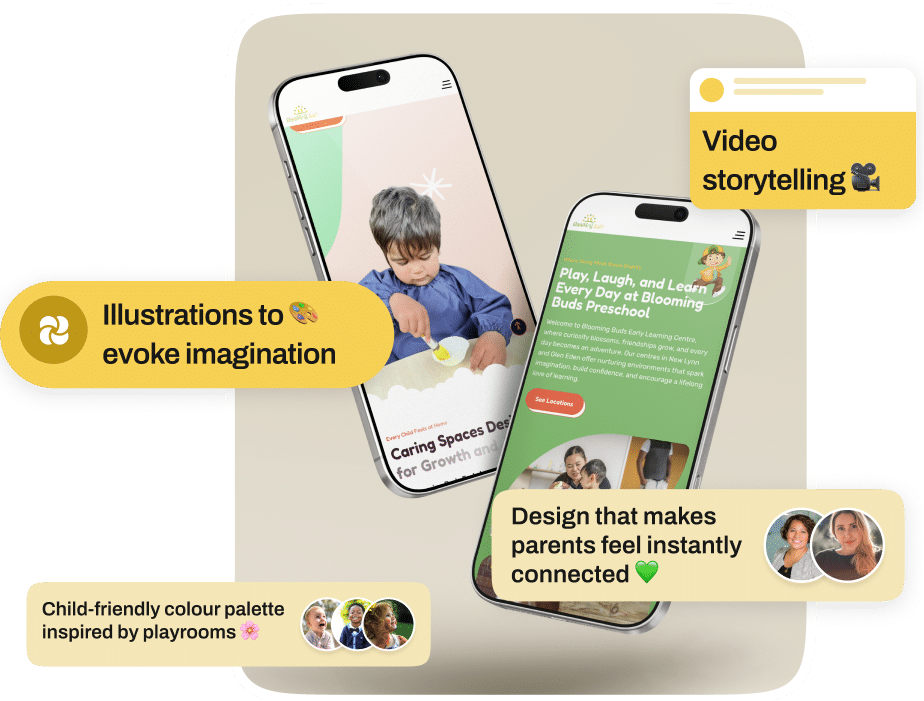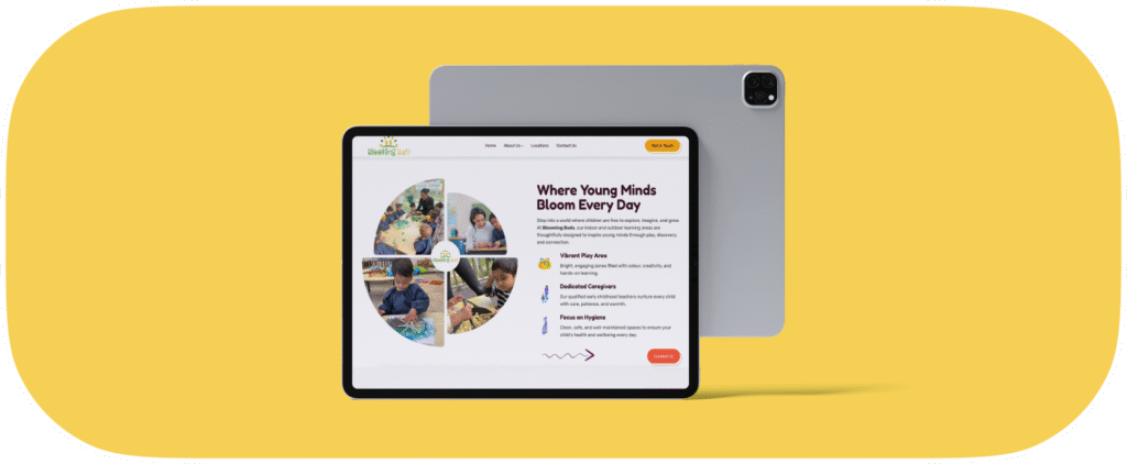 Our vision was to build something more than just informative — we wanted parents to feel the warmth, playfulness, and care the centre brings to every child. From colour palettes inspired by childhood creativity to motion that mimics a child’s imagination, every decision was made to make the brand bloom — online and off.