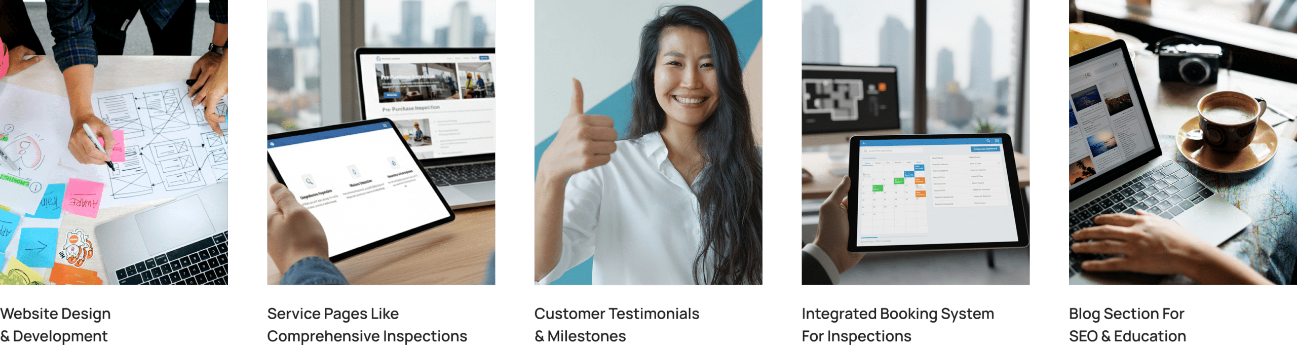 Multiple CTAs: “Book Your Inspection”, fast access to pricing and services.