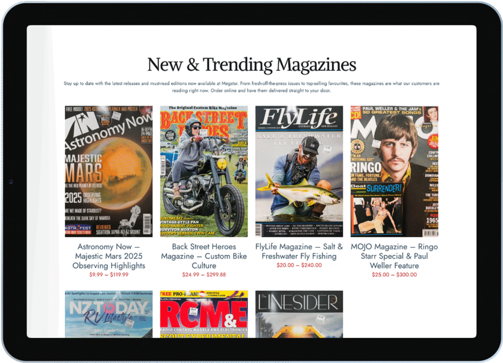 Megstar is a well-established magazine retailer in New Zealand, offering a wide range of local and international magazines. While popular with walk-in customers, they lacked a dedicated online presence to serve readers beyond their physical store.