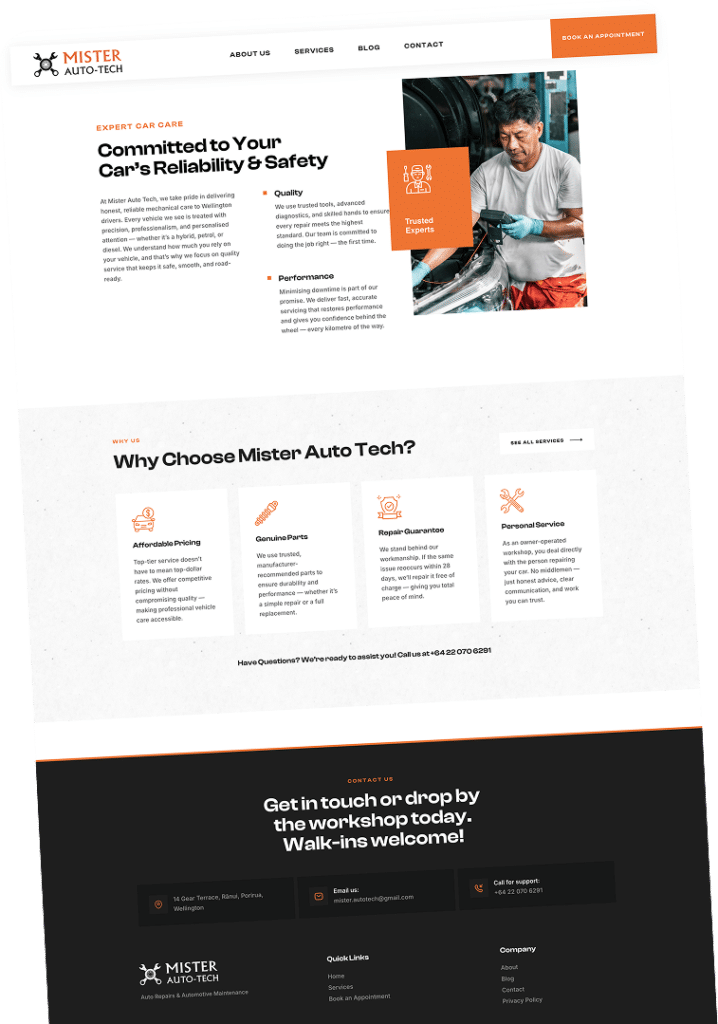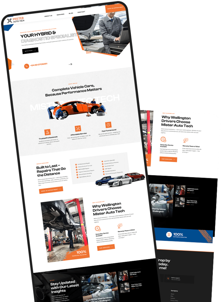 Mister Auto Tech required a professional website to clearly present its automotive services, build local trust, and allow customers to easily book appointments online. No Brainer Creative designed and developed a clean, structured website focused on usability, clarity, and conversion for a busy Wellington workshop.